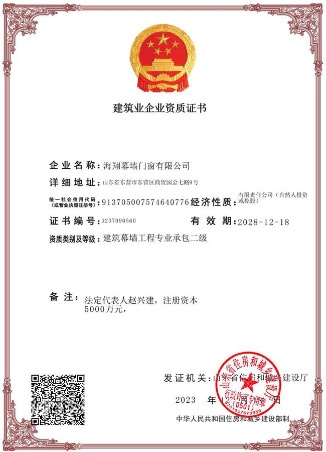 建筑幕墙工程专业承包贰级